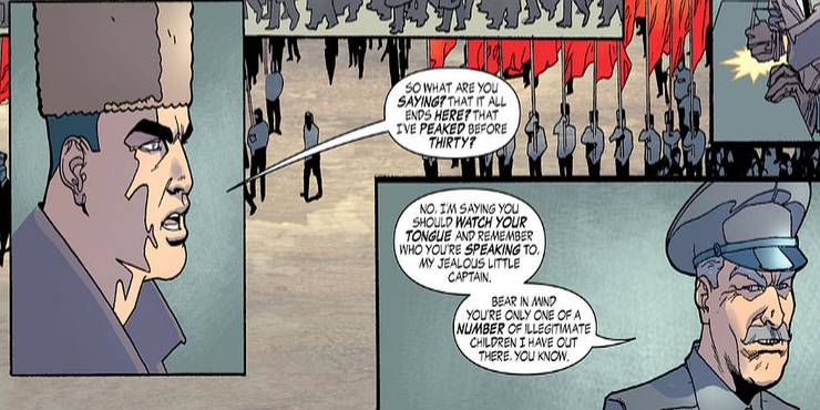 Hay un poco de celos entre las filas del partido comunista en Red Son. Con la introducción de Superman al mundo, el actual capitán del brazo armado de la Unión Soviética, el N.K.V.D., expresa su frustración con Stalin. Previamente preparado para ser el eventual reemplazo del líder, cree que Superman tomará su lugar. A su vez, Stalin regaña a su hijo ilegítimo.