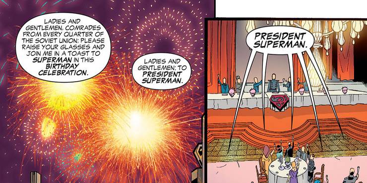 No es el caso en los universos de Elseworlds. De hecho, Red Son no es la única historia en la que Superman asume el papel de presidente. En una historia de los años 90, decide postularse a la presidencia de EE.UU. cuando el actual candidato, su amigo Pete Ross, es asesinado. La principal diferencia es que el Kal de esa historia solo cumplió con su mandato obligatorio. El de Red Son mantiene el poder desde 1953 en adelante.