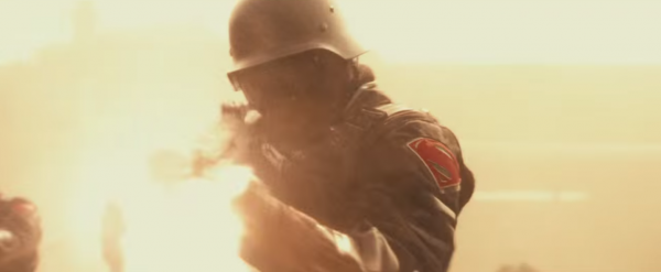 Mientras vemos como soldados con insignias de Superman disparan y luchan contra Batman.