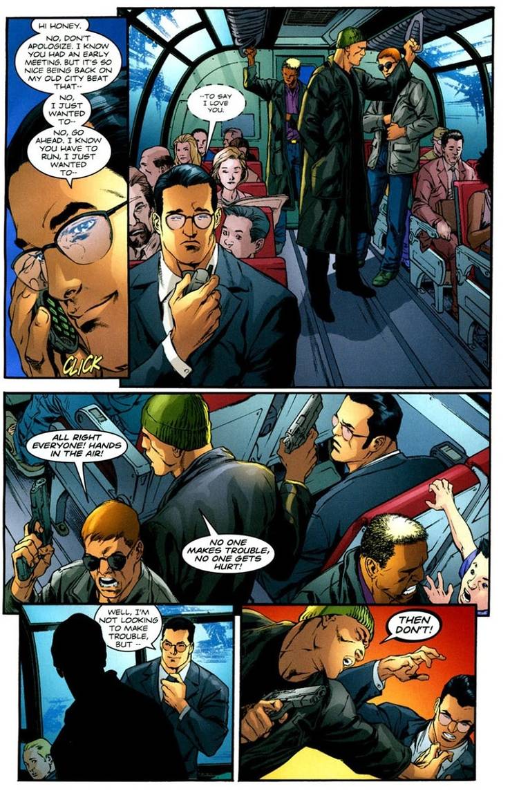 Chuck Austen vino de Marvel con unos cuantos goles con su carrera de Action Comics, que fue emparejada con los artistas Ivan Reis y Marc Campos. En primer lugar, iba a hacer hincapié en el título del cómic – ¡este cómic iba a estar repleto de ACCIÓN! Definitivamente resultó ser el caso. Había toneladas de acción. Otros dos puntos, sin embargo, tuvieron menos éxito. Una era ver a Clark Kent degradado y por eso tenemos la idea de que Superman sigue siendo, ya sabes, Superman, pero en su vida privada, Clark Kent era ahora un poco una broma. Eso nunca llegó a ninguna parte (pero, de nuevo, la carrera de Austen se interrumpió). La otra era mirar de otra manera el matrimonio de Clark Kent y Lois Lane. No para separarlos, por supuesto, sino para darles una mirada un poco más escéptica, con la idea, supongo, de que salgan más fuertes por el otro lado (que nunca vimos porque, una vez más, la carrera de Austen fue interrumpida).