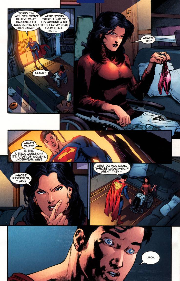 Así que, Lois Lane fue disparada y casi asesinada mientras cubría la guerra. Ella se está recuperando en Action Comics #822 cuando, vaya, vaya, encuentra unas braguitas de Lana…
