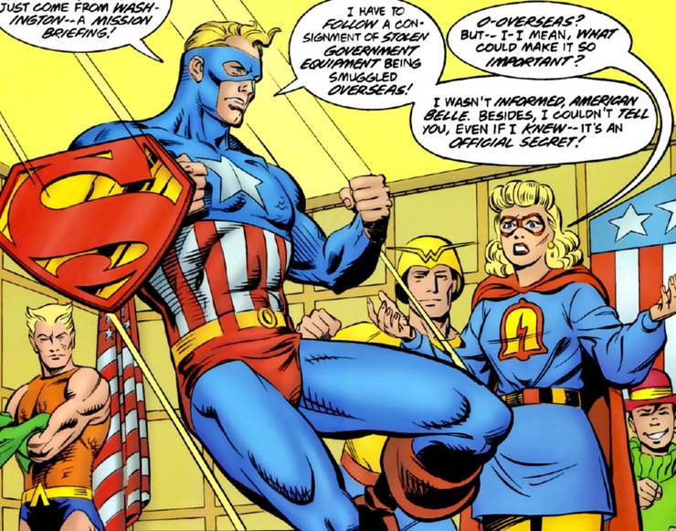 Los miembros del equipo de Metrópolis combinaron los héroes de DC y Marvel con una lista que incluía a Linterna Humana (Antorcha Humana y Linterna Verde), The Whiz (Flash y Whizzer), Aqua-Mariner (Aquaman y Sub-Mariner) y American Belle (Miss América y Liberty Belle). Su miembro honorario, Brooklyn Barnes, también combinó a Bucky Barnes y a un joven Dan Turpin, un personaje que en ese momento en los cómics y los dibujos animados se había convertido en sinónimo de Metrópolis y Superman.
