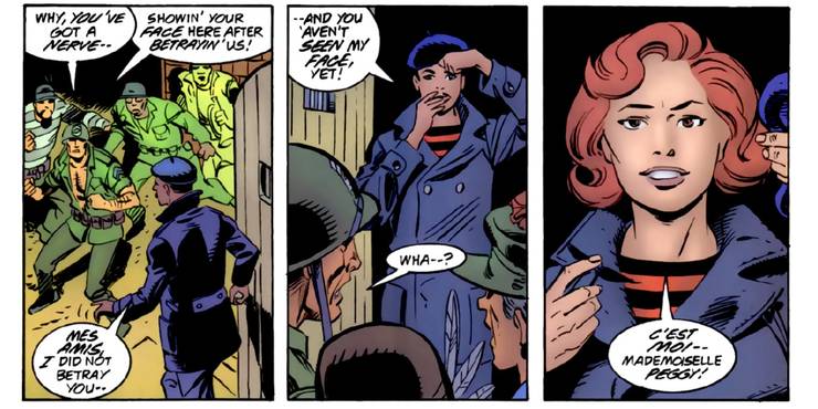 Para algunos miembros del reparto de apoyo, Amalgam Comics se volvió un poco más esotérico. Mademoiselle Peggy es una combinación del ahora popular personaje de Marvel, la agente Peggy Carter, con el mucho más oscuro personaje de DC, Mademoiselle Marie, una espía francesa más famosa por tener un hijo con Alfred Pennyworth. Los Comandos Aulladores son un equipo de Marvel de soldados de la Segunda Guerra Mundial, incluyendo la versión clásica de Nick Fury. Aunque tenían su nombre habitual, también se combinaron con el equipo de la Segunda Guerra Mundial de DC, Sgt. Rock y Easy Company.