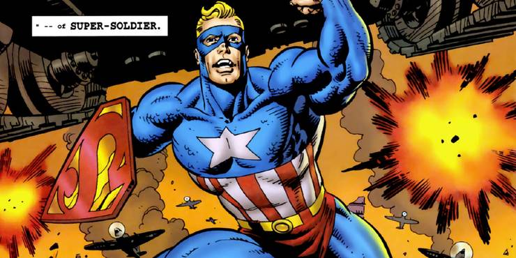 Cuando los Universos Marvel y DC se combinaron, Superman y el Capitán América se unieron para formar Super-Soldado (Super Soldier), el héroe patriótico definitivo.