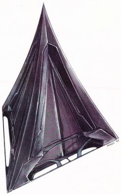Ahora nos llega algunos diseños realizados por John Mann (entiendo que el mismo del que pudimos ver hace tiempo storyboards de “Iron Man 2″) del arma espacial que Luthor iba a tener en la película orbitando alrededor de la Tierra. Desde fuera, tendría la forma piramidal y de color negro.