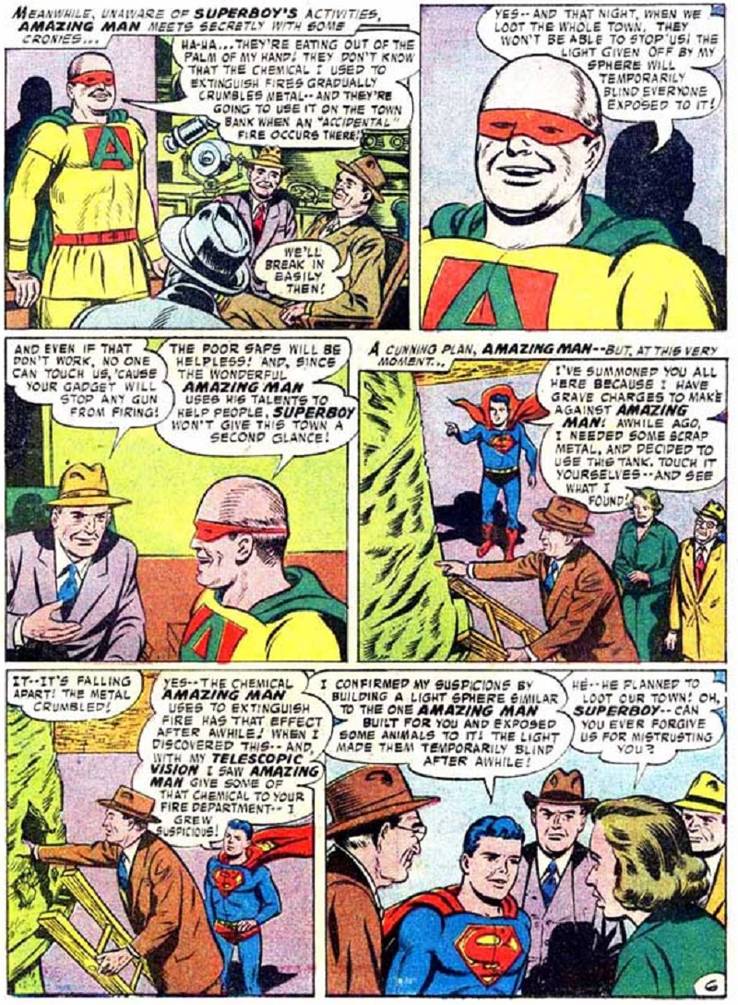 Este nuevo héroe, Amazing Man, es capaz de usar su cerebro para el bien en lugar de sólo la fuerza muscular. Impresionó a todo el mundo, incluyendo a Superboy.