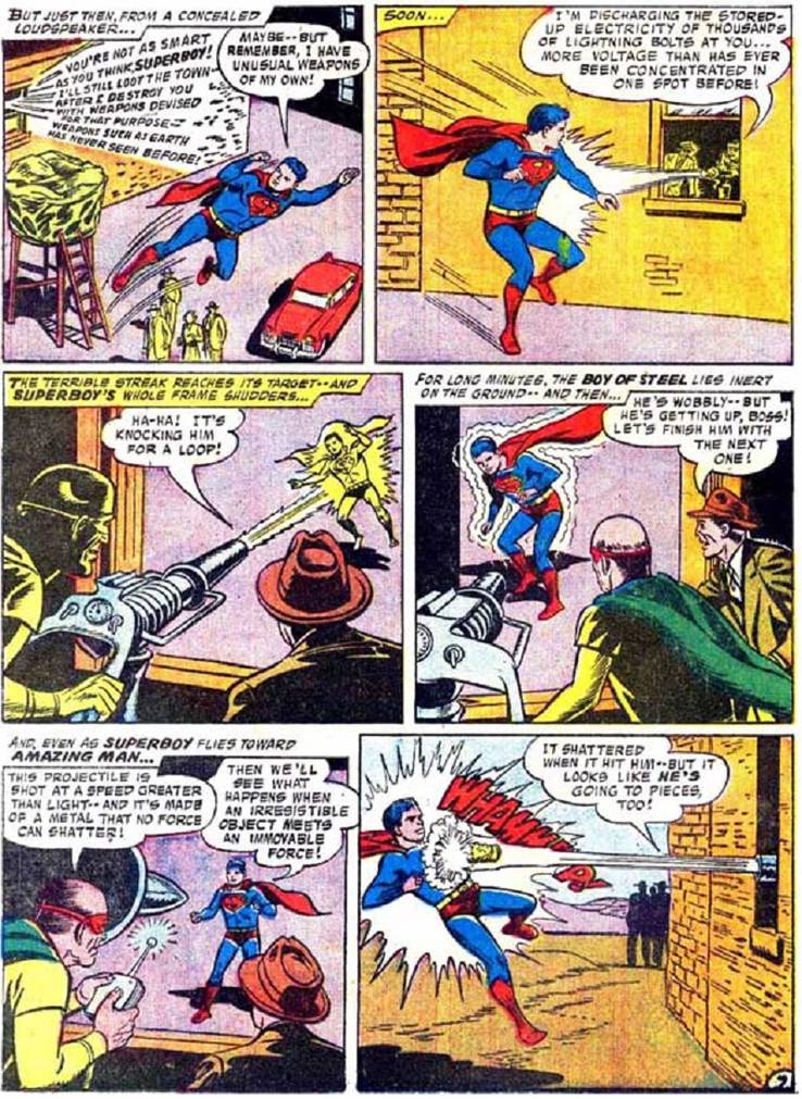 Por supuesto, Amazing Man es en realidad Luthor, que ya tiene el aspecto más adulto posible. Sin embargo, no se da cuenta de que Superboy está en su plan.