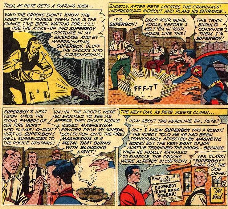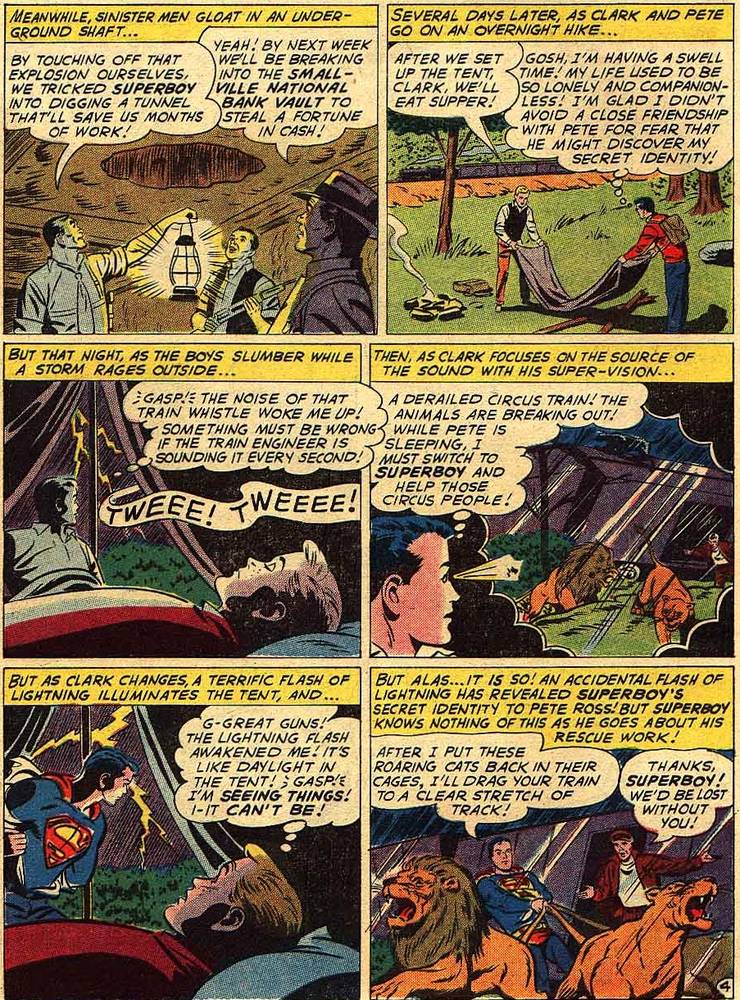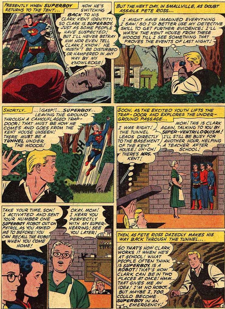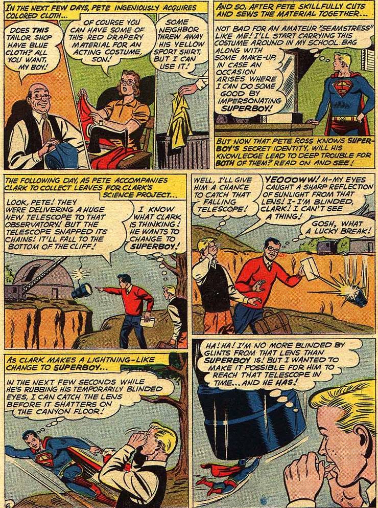 En resumen, en Superboy 90 (de Robert Bernstein y George Papp), Pete Ross descubrió la identidad secreta de Superboy…