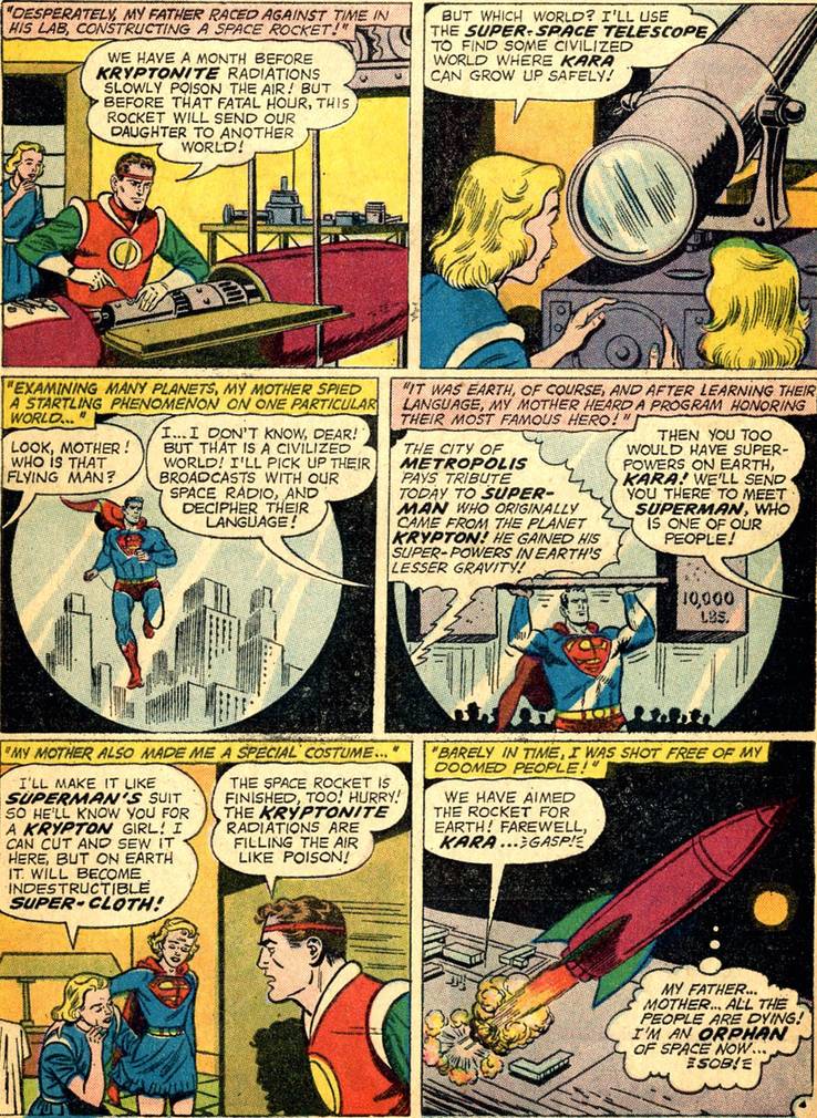 Eso es lo que Superman fue a lo largo de la década de 1930 y toda la década de 1940, pero Supergirl NO fue la primera superviviente de Krypton que Superman conoció. ¡Mierda, ni siquiera era la segunda o tercera superviviente que Superman conoció! De hecho, él había conocido a miles de personas antes que ella!