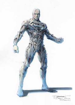 ¡Sí! Nunca fue diseñado para ser el verdadero traje de Superman. Superman muere, en la versión de Tim Burton. Él es envuelto alrededor de esta presencia alien que asumo que alguien sacó de los cómics. Es una forma viviente que lo trae de vuelta a la vida. Así que todo el mundo vio el traje y dijo: ‘Jesus, ¡Tim ha perdido la cabeza! ¡Steve lo ha fastidiado bastante!’ ¡Eso no fue lo que ocurrió! Nunca estuvo destinado para ser el traje de Superman. Era la envoltura alien. Vamos a retener eso de una vez. Colleen Atwood diseñó todos los trajes de Superman. Teníamos el verdadero; tenía el negro para el final. Pero el que ha visto la gente no era el traje de Superman, era el alien que lo regeneraba y era realmente simple. No sé porqué todos los fans se enfadaron tanto. Si fuesen verdaderos fans, ¡lo sabrían!