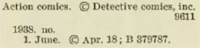 Así que el 18 de abril de 1938 es cuando National recibió la fecha de copyright para Action Comics #1. Sin embargo, eso NO es categóricamente cuando el cómic fue lanzado en las tiendas. Típicamente hablando, sería un par de semanas después de la fecha de copyright.