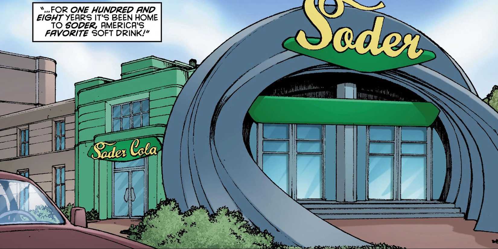 Soder Cola es un competidor directo de Zesti en DC Comics, no muy distinto de Coca-Cola y Pepsi.