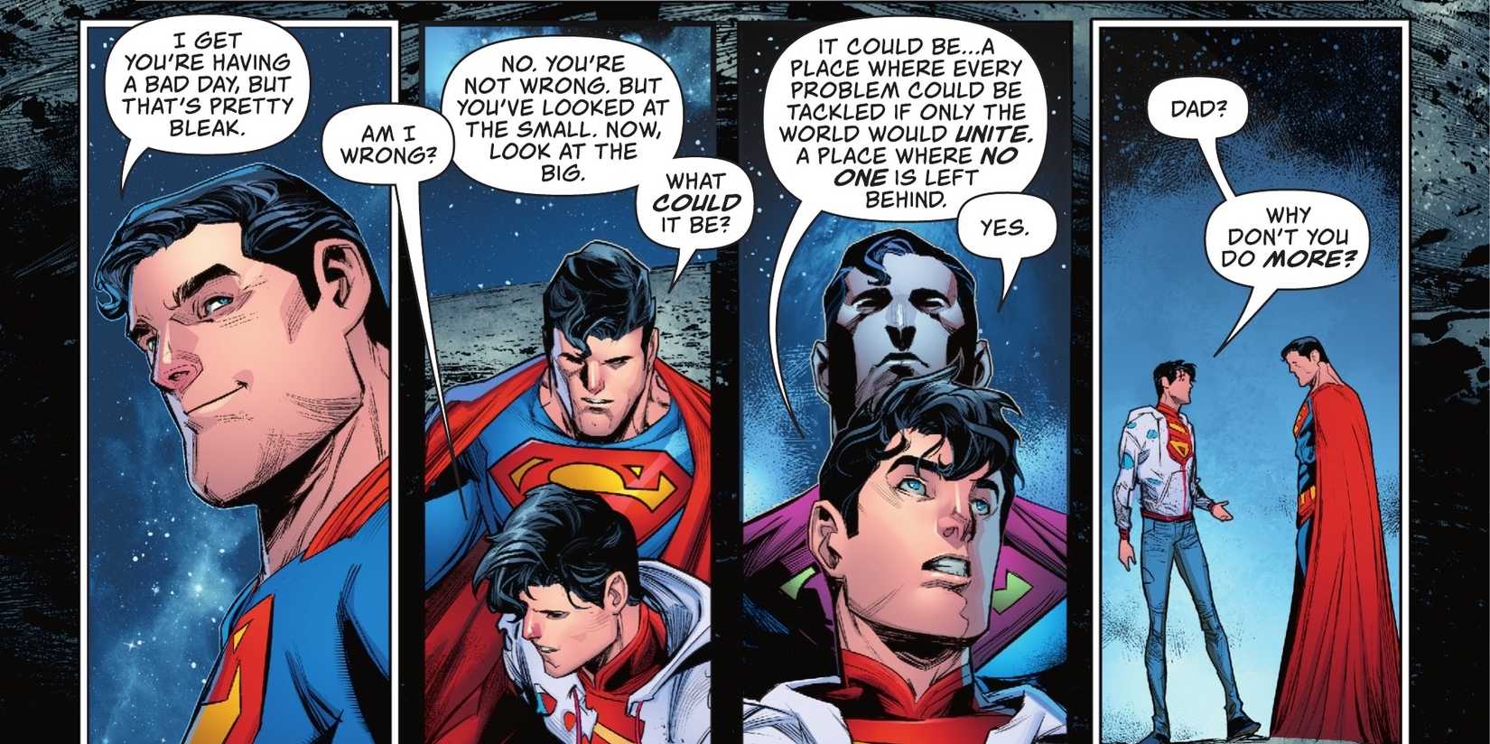 El mensaje completo de Jor-El y Lara animando a su hijo a gobernar la Tierra y repoblar el mundo con híbridos Humano-Kriptonianos es un giro sorpresa, aunque uno que ya se ha visto antes en los cómics originales de Elseworlds, Smallville y, más recientemente, en la serie de animación Mis aventuras con Superman.