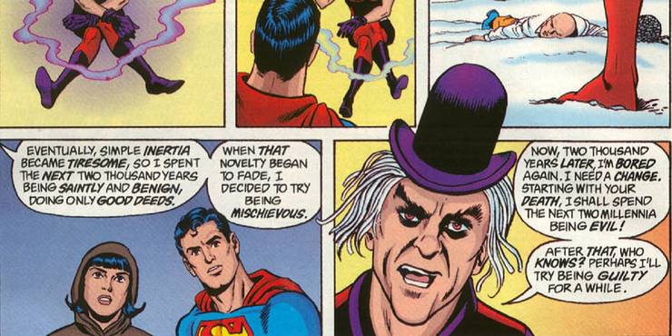 Los eventos del crossover de títulos de «Superman», «Emperador Joker», es un poco difícil para esta lista, ya que no se trataba de que el Sr. Mxyzptlk le hiciera algo activamente a Superman. Sin embargo, como todo se debe a él, creo que debe ir en la lista. La historia giraba en torno a la idea de que el Joker engañó al señor Mxyzptlk para que le diera sus poderes. El Joker usó esos poderes para recrear el mundo a su imagen, que no era una imagen que nadie quisiera ver.
