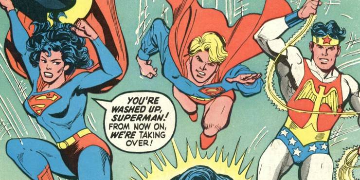 Después de regresar de una misión en el espacio exterior, Superman regresó a la tierra en «Superman» #349 (por Martin Pasko, Curt Swan y Frank Chiaramonte) sólo para descubrir que ¡todo era muy diferente! ¡Todos los hombres y mujeres habían cambiado de género! Superman se imaginó que tenía que haber terminado en una Tierra alternativa. Sin embargo, pronto se vio en problemas cuando Superwoman y el resto de la Liga de la Justicia le dieron caza, ¡incluyendo al Guerrero Maravilla y su lazo de la verdad!