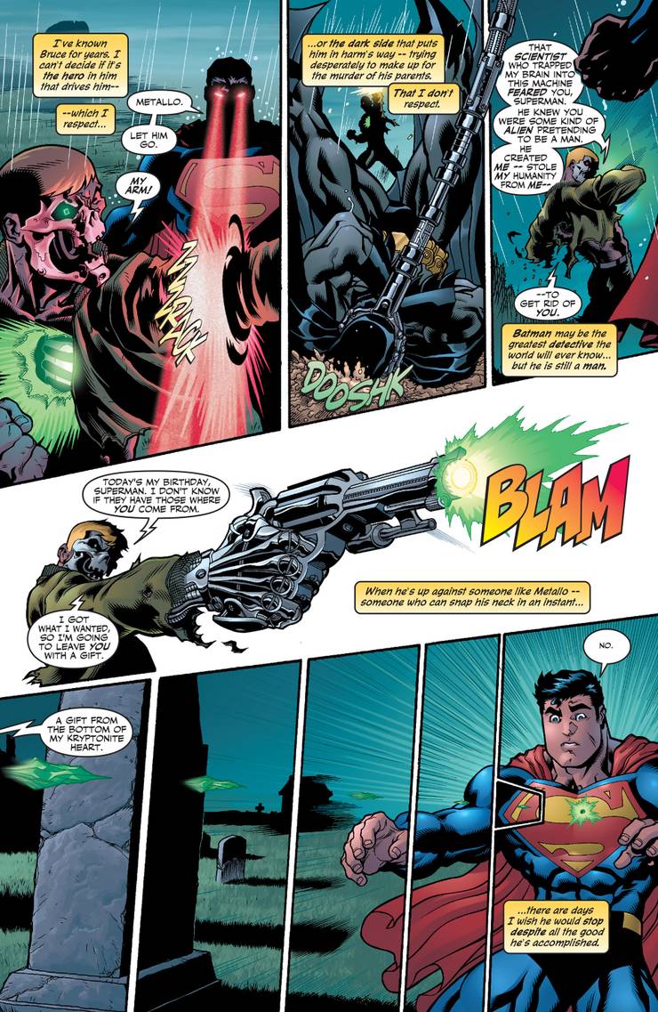 En el lanzamiento de 2003 de Superman/Batman (de Jeph Loeb, Ed McGuinnes, Dexter Vines y Dave Stewart), Batman y Superman se encontraban en un conflicto aparentemente normal con el villano Metallo cuando el malo de repente disparó a Superman con una bala de kryptonita.