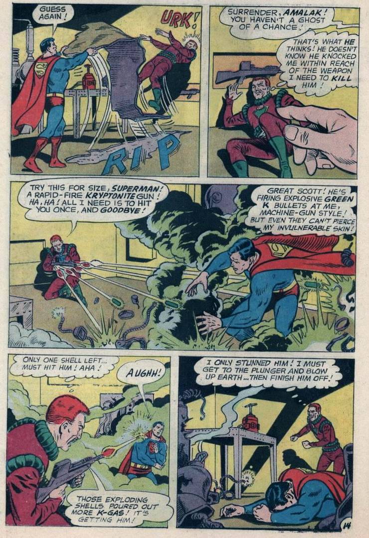 El truco ahí, sin embargo, fue que ese cómic de Bob Haney, que no era de los que seguían el periodo de continuidad, así que eso no es necesariamente indicativo de la posición general sobre las balas de kryptonita. Sin embargo, a lo largo de los años setenta y ochenta, parece que cada vez más guionistas pensaban que tenía sentido que una bala de kryptonita hiriera al Hombre de Acero, tanto si Weisinger estaba de acuerdo como si no (y como estaba retirado, ya no podía opinar).