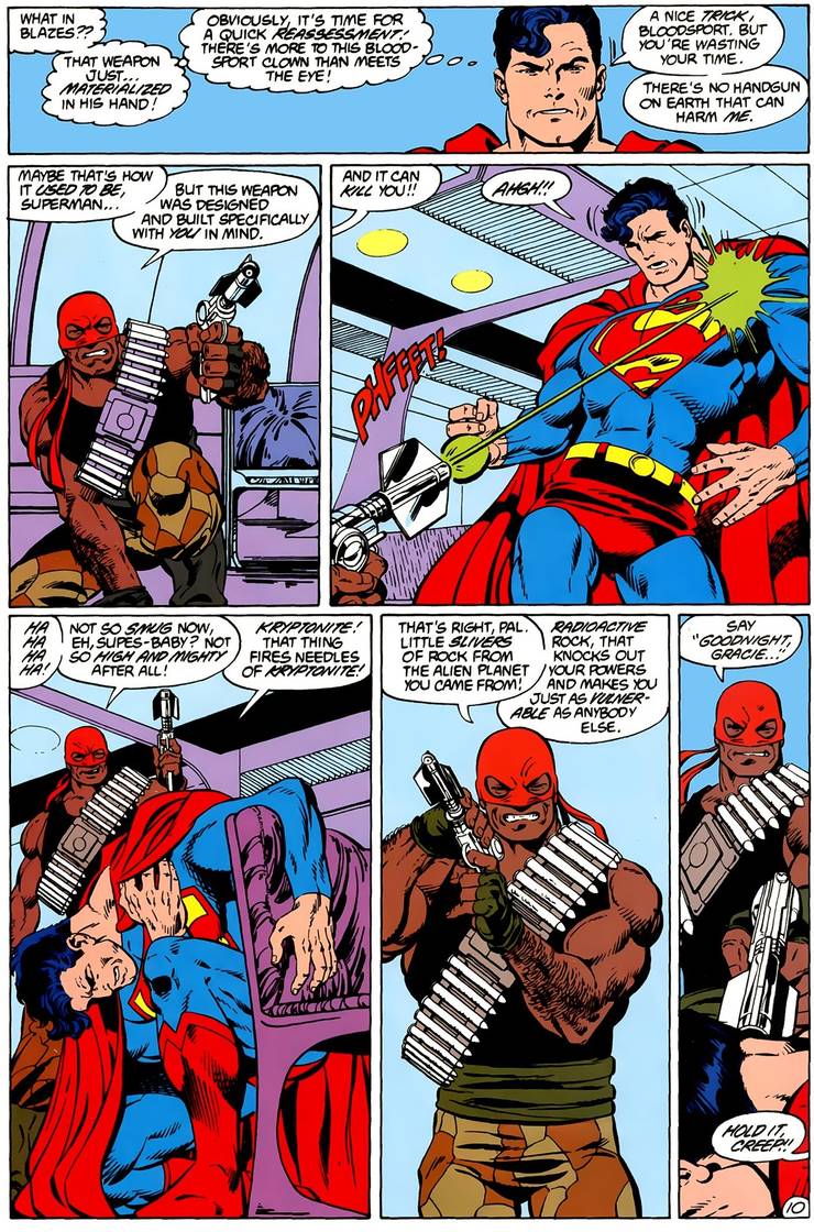 Y entonces ocurrió Crisis en Tierras Infinitas y reiniciaron a Superman y en el reinicio de John Byrne, la kriptonita era mucho menos abundante que antes de Crisis, pero al mismo tiempo, Superman #4 (de John Byrne y Karl Kesel) dejó claro que sí, las balas de kryptonita son malas noticias para el Hombre del Mañana…