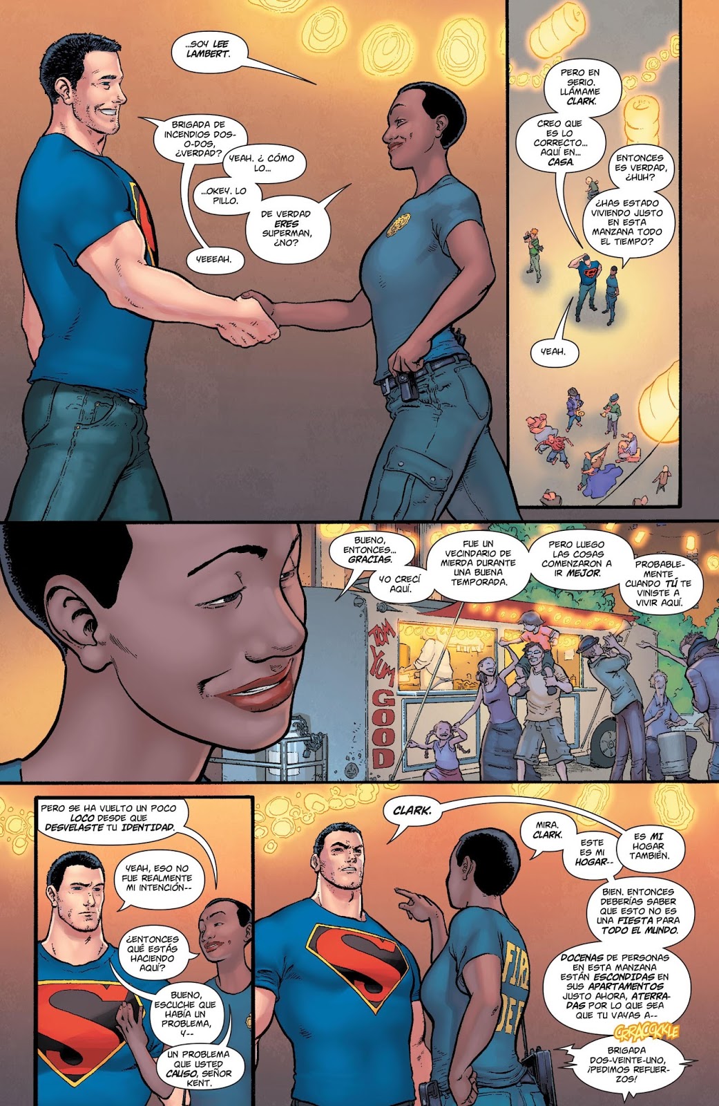 Una de las personas que se acerca a saludar al Hombre de Acero resulta ser una mujer llamada Lee Lambert de la Brigada de Incendios, quien explica a Superman que hasta no hace mucho ese era un mal barrio hasta que él comenzó a vivir allí y mejoró, pero con los últimos acontecimientos se ha desbordado de cosas sin sentido. La radio que lleva la mujer de pronto emite una señal de auxilio pidiendo ayuda para una emergencia en el embarcadero, lo que propicia que Superman salga corriendo al rescate.