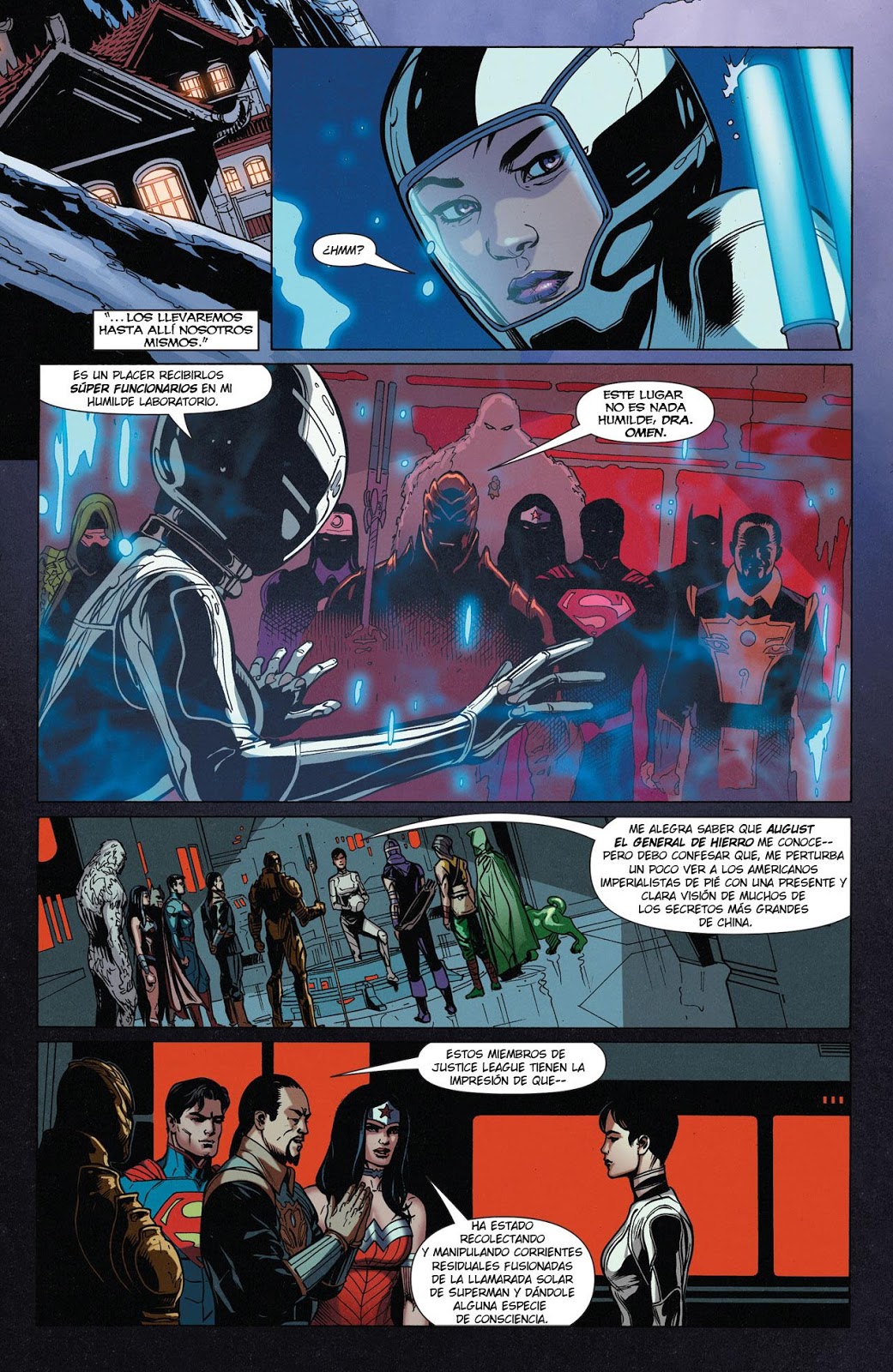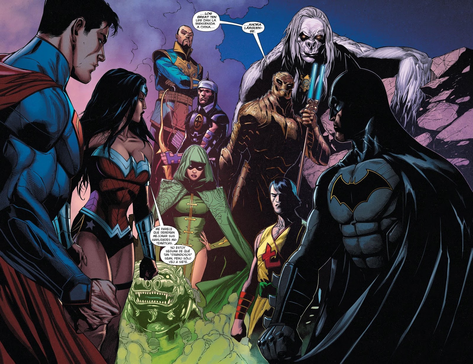 Seguimos con este arco argumental, que si bien de los aparecidos hasta ahora me parece el más flojo con diferencia, si que podemos decir que va dejando conceptos interesantes como es la primera aparición del Super-Man oriental que veremos en «Rebirth» y conocer los siniestros planes de la Doctora Omen.