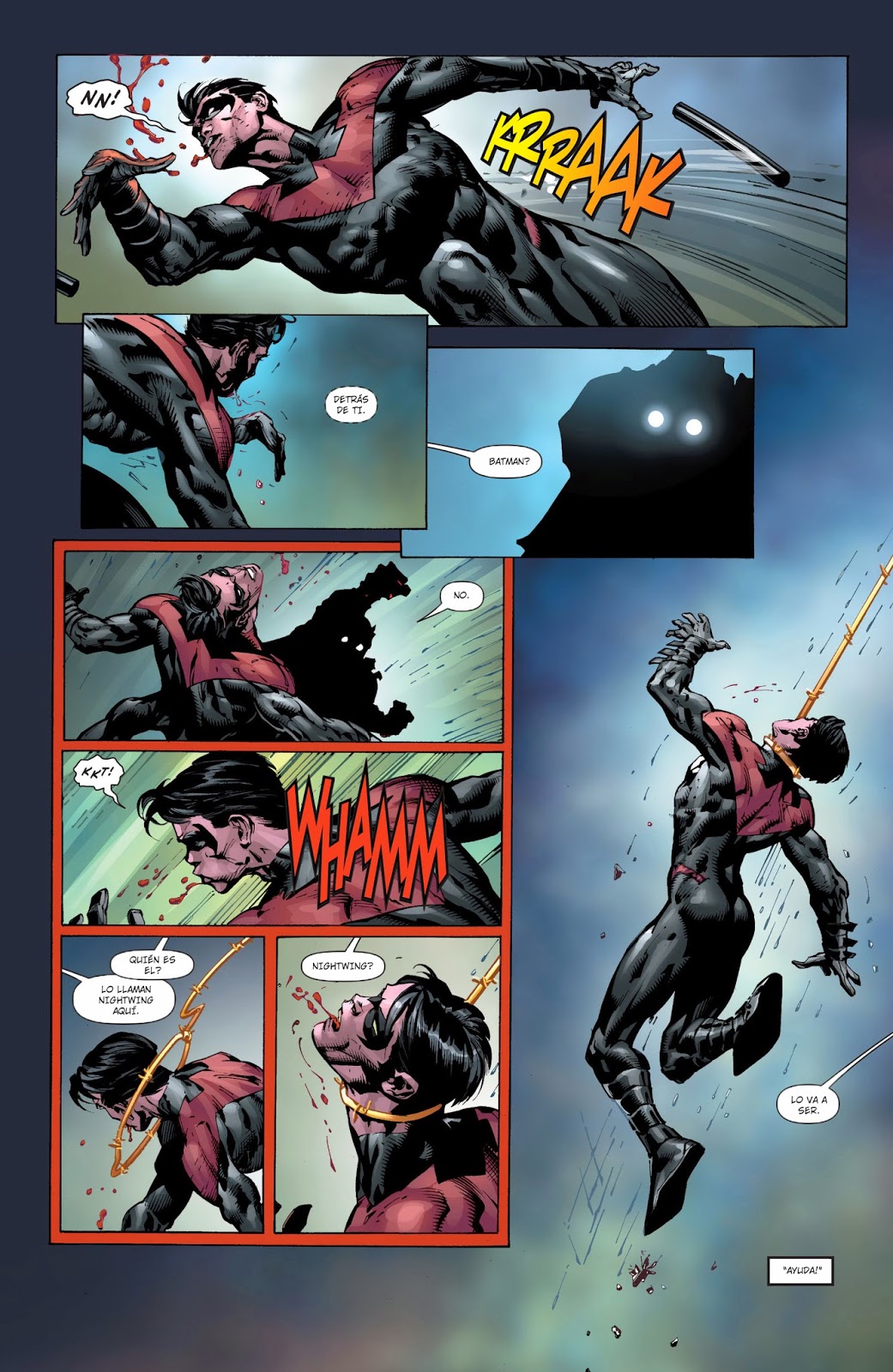 arrancando las puertas de Arkham Asylum. Antes de que pueda hacer nada, Nightwing es atacado por la espalda por alguien