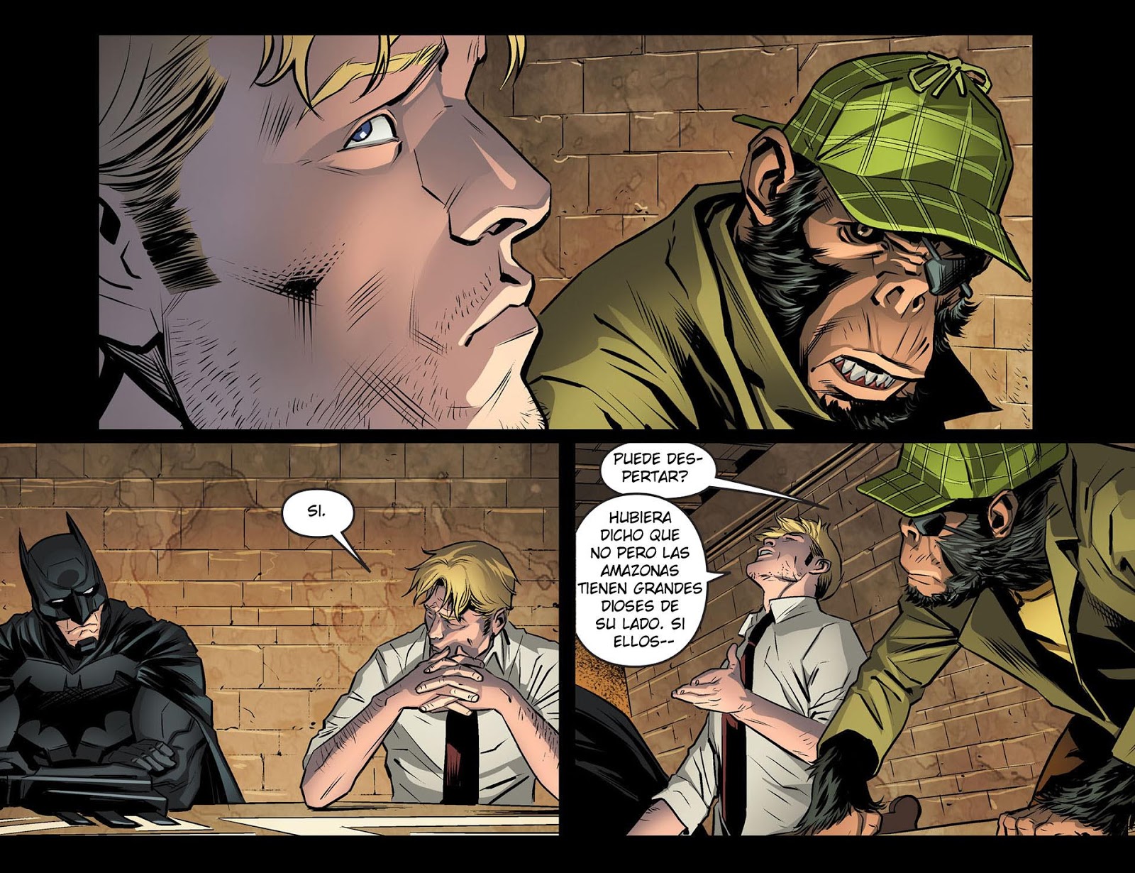 En la Torre del Destino, Constantine y Batman informan al resto de los miembros de la resistencia del resultado de su conversación con Madame Xanadú, los dos héroes explican que la mística fue poseida, pero antes dijo algo bastante triptico que relacionan con la Cosa del Pantano y con Wonder Woman. De pronto en la sala irrumpe Detectíve Chimp ya recuperado, el cual les dice a sus compañeros que sabe que la Princesa Amazona continúa en coma y es por causa de Constantine que ha usado su poder con ella.