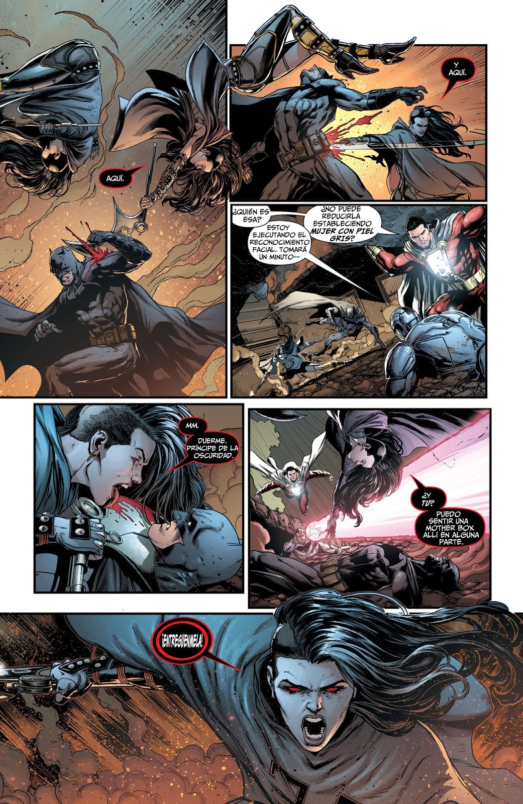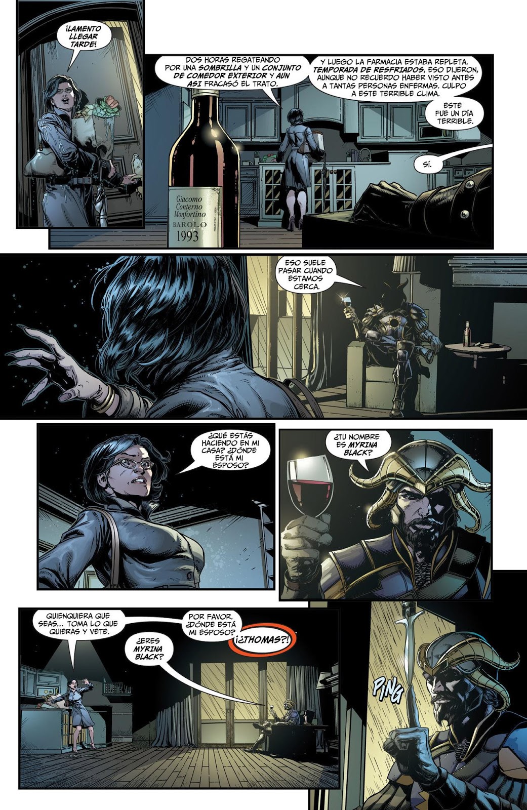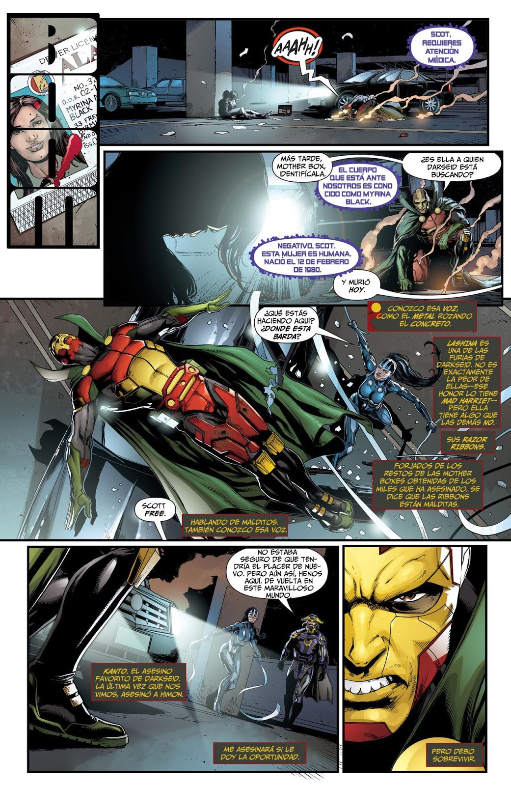 Comenzamos este nuevo número en un apartamento en penumbra, sentado y escondido entre las sombras aguarda Kanto, un sicario de Darkseid, de pronto, la dueña de la casa entra, al ver al extraño hombre se alarma y pregunta por su marido, pero Kanto únicamente la pregunta si su nombre es Myrina Black, pero la mujer no llega a responder porque el sicario lanza un puñal que termina por asesinarla, segundos después una sombra femenina observa el cadáver, Lashina, una de las furias de Darkseid, confirma que no se trata de la mujer que buscaban y Kanto ordena a Madre Caja que les teletransporte a su siguiente objetivo.