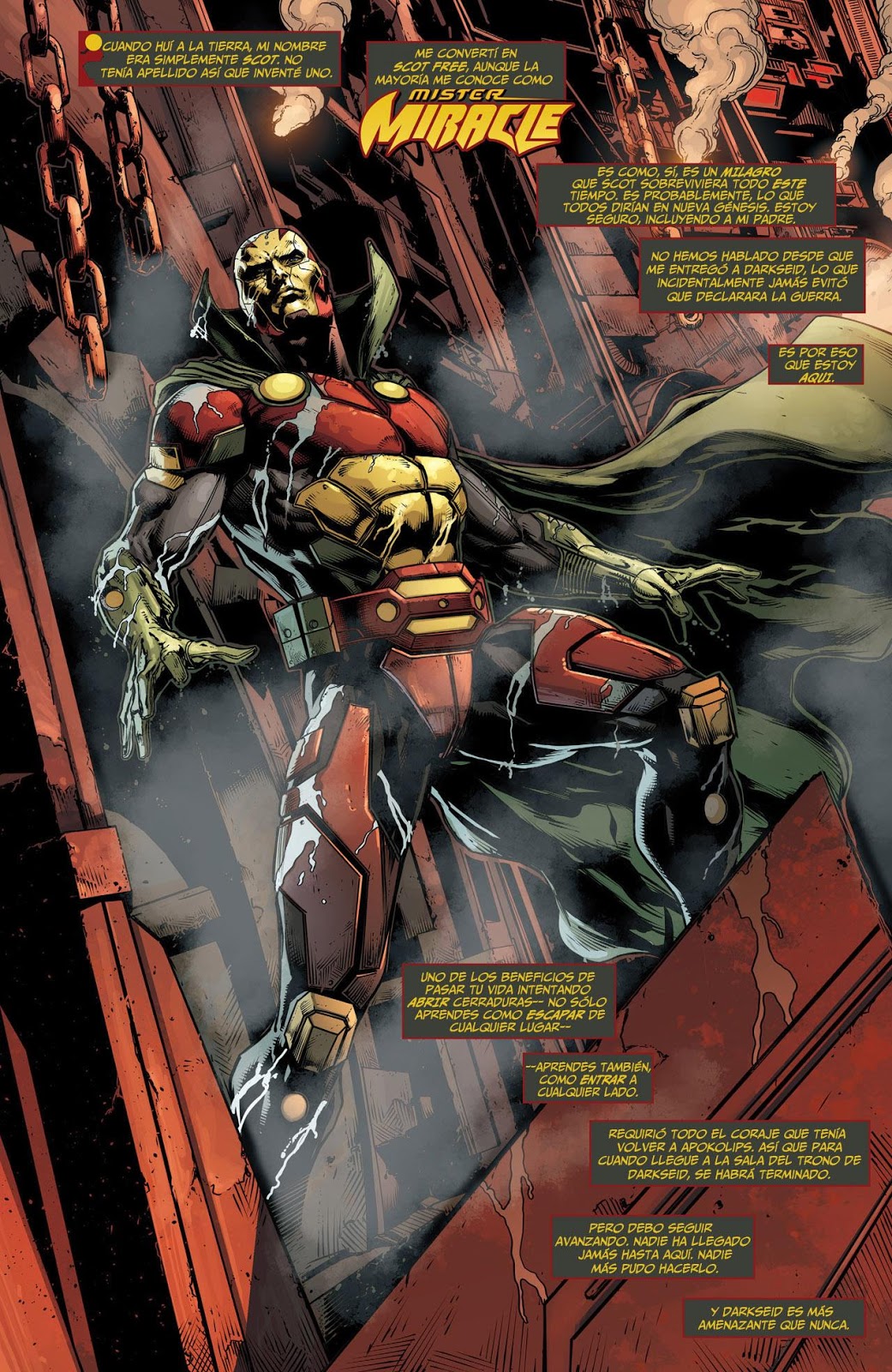 lanzando contra él sus rayos Omega, el Señor Oscuro le recuerda que no es más que un simple esclavo, al tiempo que amenaza con dañar a Big Barda y trata de aplastar a Mister Miracle, pero éste logra teletransportarse gracias a Madre Caja.
