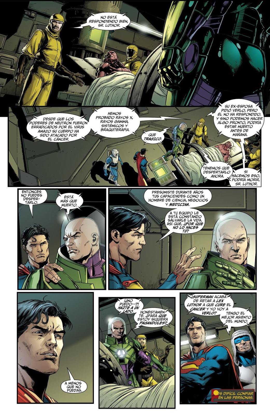 La visión del cadáver impacta especialmente al Capitán Marvel, que lo reconoce ante Cyborg que está siguiendo el rastro del Boom tunel. Por su parte, el Hombre de Acero se encuentra en las instalaciones de LexCorp, hasta allí ha sido trasladado Neutrón, que está a punto de morir por culpa de un cáncer ya que sus poderes han desaparecido debido al virus Amazo. Los médicos de LexCorp son incapaces de sanarle y Superman desafía a Luthor diciéndole que él es el único que podría curarlo, las palabras del kryptoniano pican el orgullo del villano que se prepara para sanar a Neutrón.