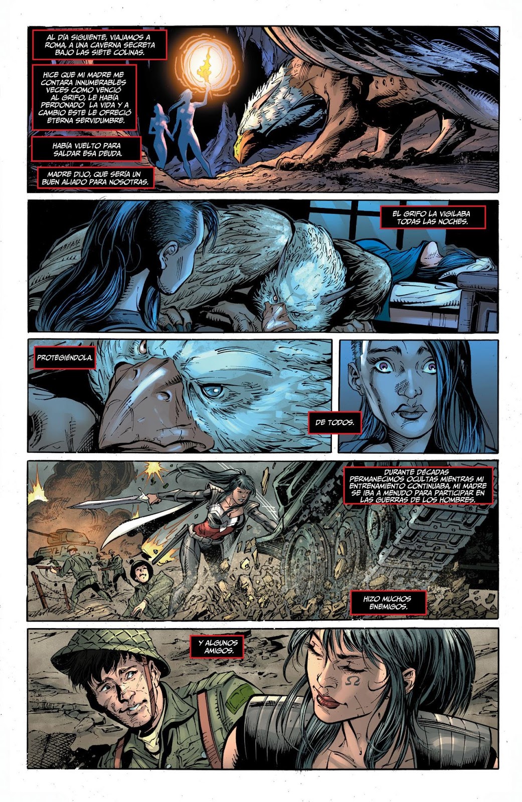 A través de un flasback, vemos la noche en que nació Grail, coincidiendo con el momento en el que nace Wonder Woman, Myrina Black y su bebé son descubiertos por las Amazonas y se ven obligadas a huir de Themyscira, el propio Zeus trata de matarlas, pero logran llegar a tierra firme, en donde se encuentran con soldados griegos, que son asesinados por Miryna y el propio bebé que lanza los rayos Omega por sus ojos aniquilando a los pocos que sobreviven.