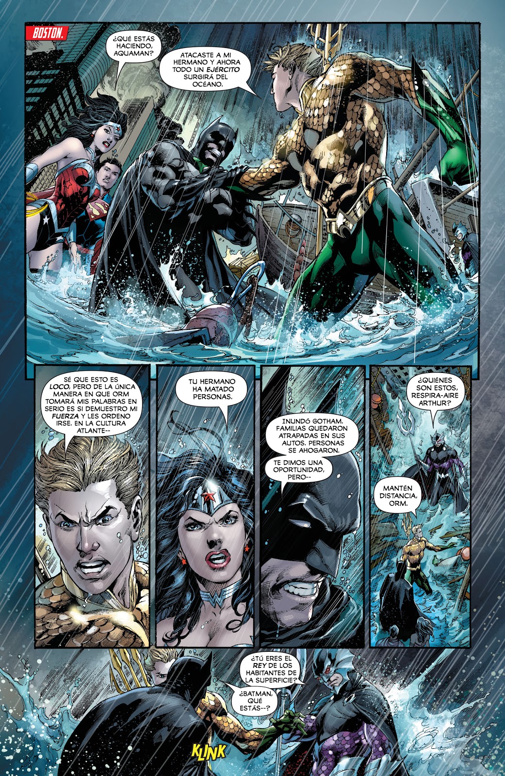 ciudad de la superficie del mundo. Debe ser una de las ciudades que inundó. Orm se ha decidido por Boston. Vulko dice que la Liga debe dejar que Aquaman razone con