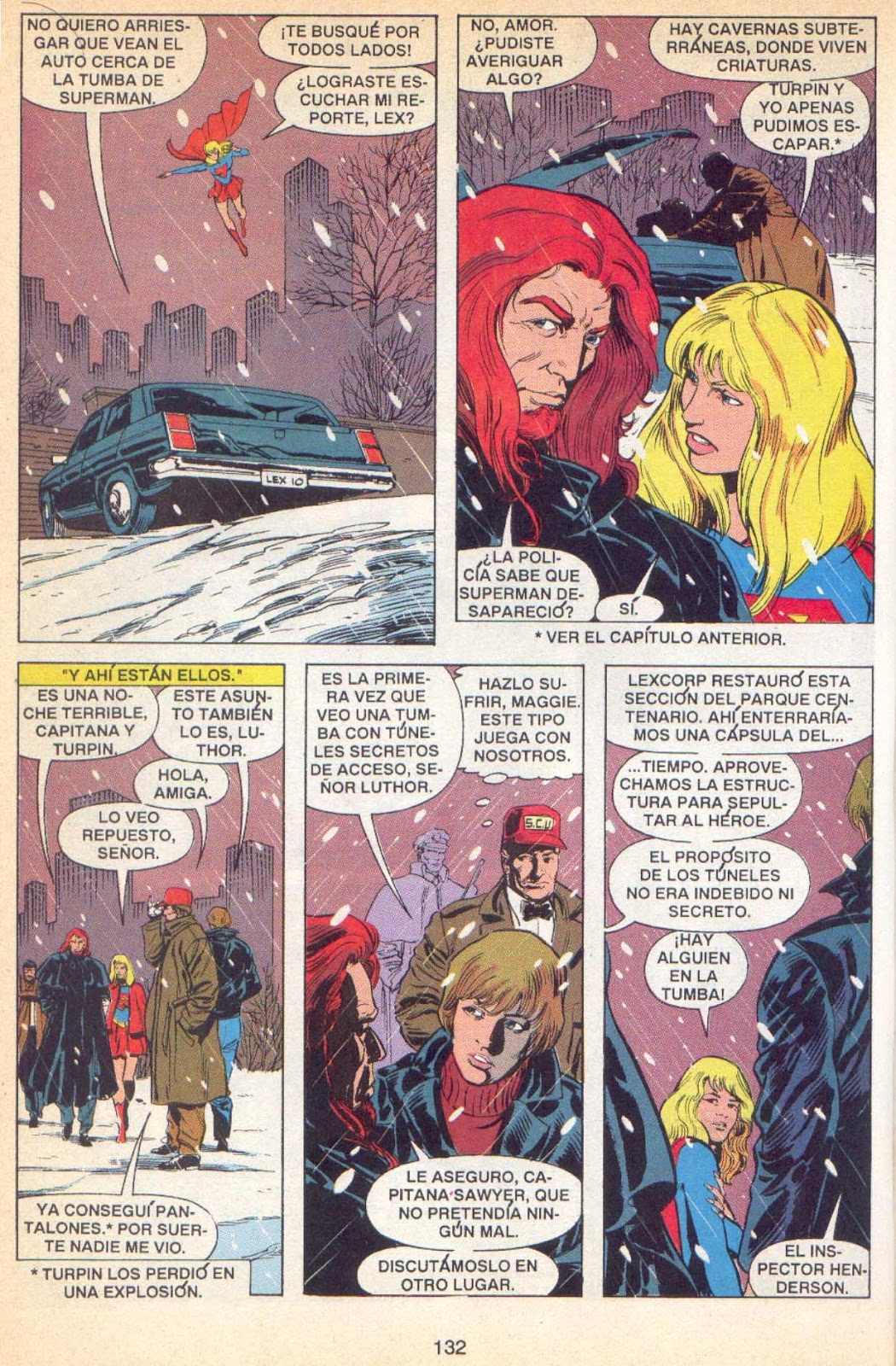 No muy lejos de allí, Lex Luthor ha llegado a la tumba profanada del Hombre de Acero, allí le aguarda Supergirl y la Unidad de Crímenes Especiales de Metrópolis al completo. Todos deciden emprender la busqueda del kryptoniano y se adentran por los tuneles secretos de la tumba. De vuelta a CADMUS, Dubbilex explica al Guardían que el Director Westfield se ha encerrado junto con un equipo de científicos en el laboratorio siete de las instalaciones. El Guardián accede al laboratorio y se vuelve furioso al ver el cadáver de Superman en una mesa quirúrgica. Westfield se defiende, alegando que sus experimentos permitirán clonar al Hombre de Acero.