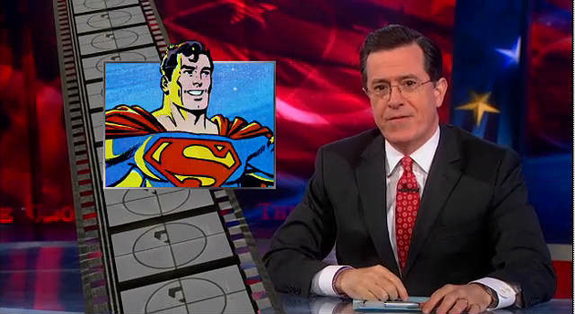 Stephen Colbert es un actor, escritor y cómico estadounidense. Es conocido por su personaje homónimo que es el anfitrión de The Colbert Report. Colbert utiliza una forma especial de sátira para burlarse especialmente de los políticos y los medios noticiosos. En «The Colbert Report» (Informe de Colbert), pretende ser un anfitrión de derecha en la demostración de la charla. Pues bien, ¿y qué tiene que ver este tipo con Superman? Pues resulta que Colbert teme que el nuevo Superman sea pro-Obama de la Casa Blanca, mientras que «Iron Man 3» se convierta en un esclavo a la financiación china.