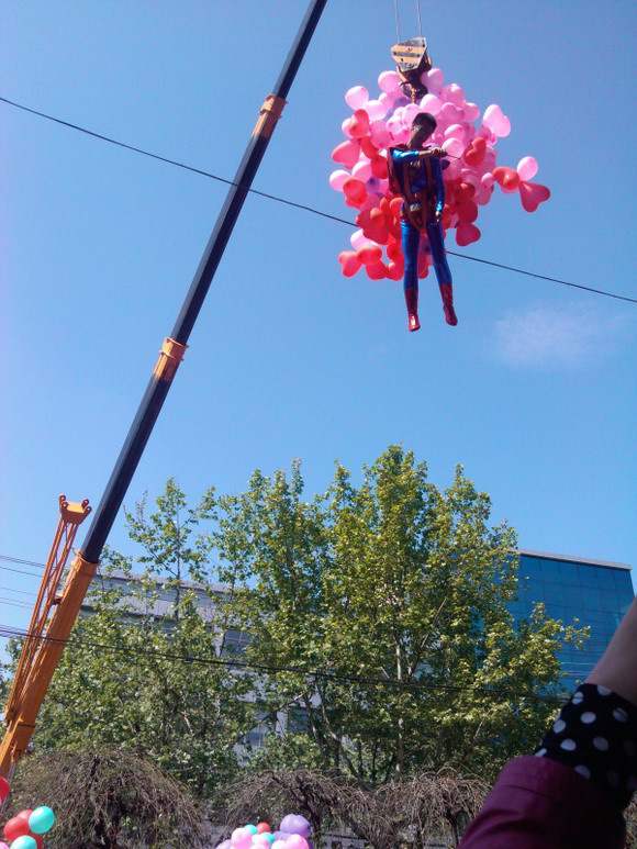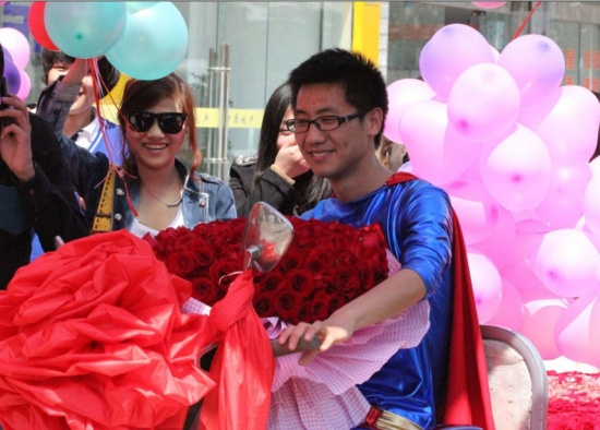 En la ciudad de Lianyungang, provincia de Jiangsu, China, un hombre no identificado se puso un traje de Superman y «voló» a 20 metros de altura desde una grúa, para proponerle matrimonio a su novia.