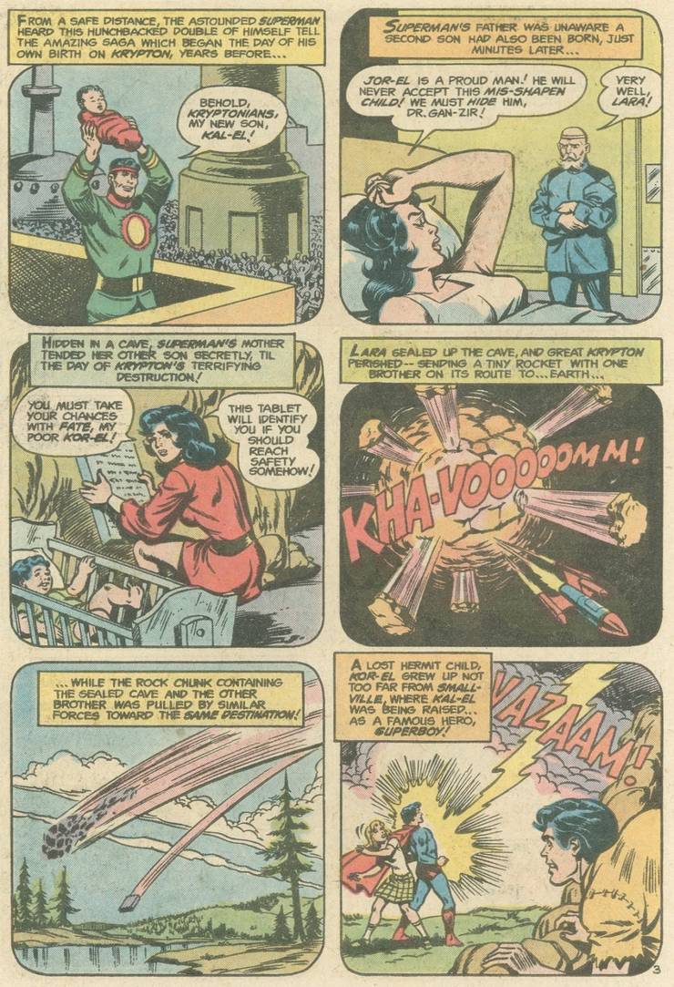 Supuestamente, cuando Kal-El nació, tuvo un hermano gemelo jorobado que Lara sabía que Jor-El nunca aceptaría, así que lo escondió de Jor-El y lo envió a la Tierra después de su hermano gemelo…