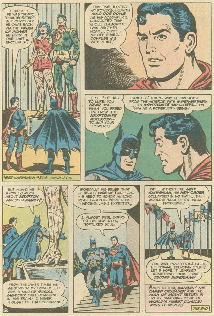 Todo el mundo creyó rápidamente lo peor de Superman y Superman estaba tan angustiado que viajó al asteroide para liberar a su gemelo, incluso sabiendo que probablemente lo mataría en el proceso…