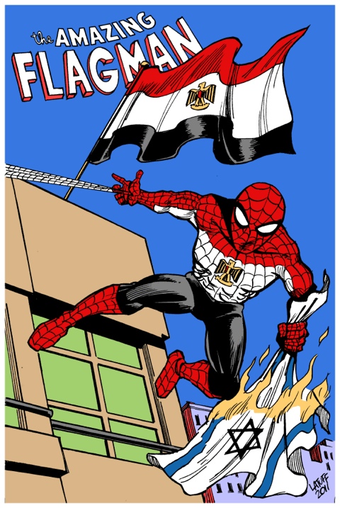 Dos de los iconos súperheroicos mas importantes de la cultura pop, son protagonistas indirectos de los asaltos a la Embajada Israelí en Egipto. En realidad, directamente lo es Superman, mientras que el uso de Spiderman es anterior, pero en ambos casos se utiliza como un símbolo en la creciente tensión entre Egipto e Israel.